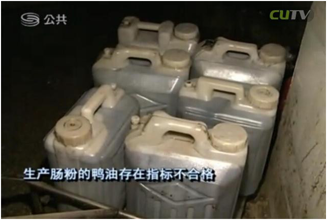 龍崗區(qū)食藥局食品安全監(jiān)管科副科長崔世峰:“從檢查和抽樣結(jié)果來看,食品廠當時使用的鴨油是屬于來源不合法。目前稽查大隊已經(jīng)對鴨油進行立案并查處。檢測結(jié)果表面生產(chǎn)腸粉的鴨油存在指標不合格,來源不明等問題。”