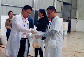 根據(jù)轄區(qū)實(shí)際情況,該局采用分組分片區(qū)的形式對(duì)轄區(qū)內(nèi)的農(nóng)貿(mào)市場(chǎng)進(jìn)行現(xiàn)場(chǎng)檢查,對(duì)牛百葉、鳳爪、海蜇等水發(fā)產(chǎn)品和豬、牛、羊肉現(xiàn)場(chǎng)使用快檢方法進(jìn)行鑒別,如經(jīng)現(xiàn)場(chǎng)快檢呈陽(yáng)性的,按照監(jiān)督抽樣規(guī)定的程序、步驟和要求進(jìn)行抽樣,抽樣完后將樣品送往海南省食檢中心檢驗(yàn)檢測(cè)。經(jīng)檢測(cè)對(duì)確定含甲醛、雙氧水或?yàn)樽⑺獾?,將立即移交公安部門追究添加非法物質(zhì)當(dāng)事人的刑事責(zé)任。對(duì)注水肉的,要追溯屠宰來(lái)源,將屠宰場(chǎng)的違法行為提供給農(nóng)業(yè)部門。