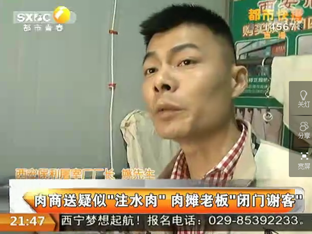 肉商送疑似“注水肉” 肉攤老板“閉門謝客”陜西都市青春頻道報道,轄區(qū)內(nèi)肉商肉商送疑似“注水肉” 肉攤老板“閉門謝客”